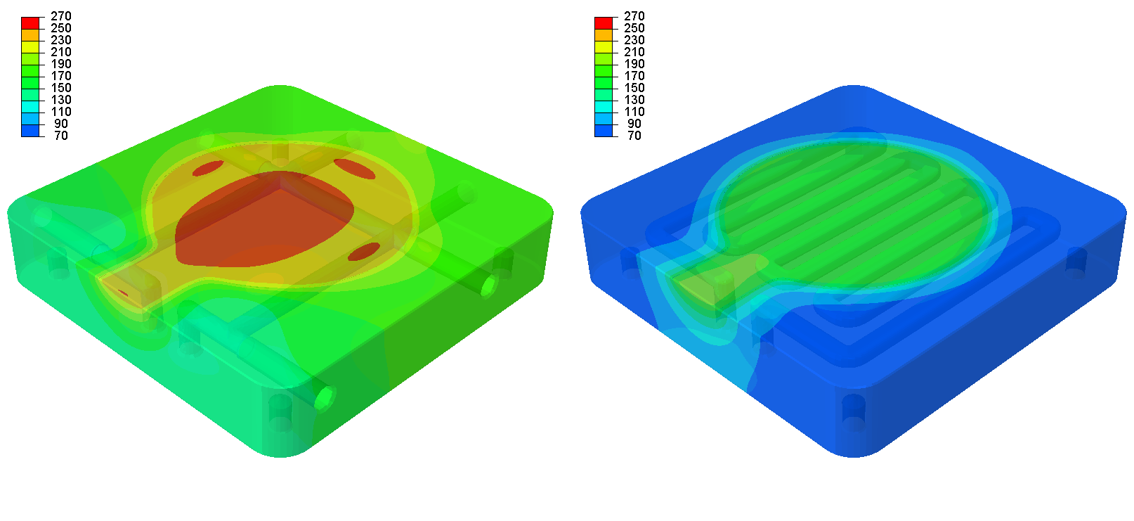 iTherm® Flat distributor is a single-body HPDC component with a specially designed internal conformal cooling system. It is used to improve heat extraction from the biscuit, resulting in faster biscuit solidification.