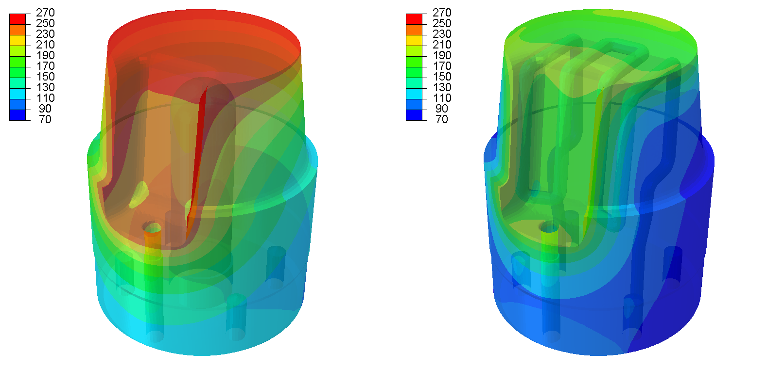 iTherm® Round distributor is a single-body HPDC component with a specially designed internal conformal cooling system. It is used to improve heat extraction from the biscuit and casting channels, resulting in faster biscuit solidification.