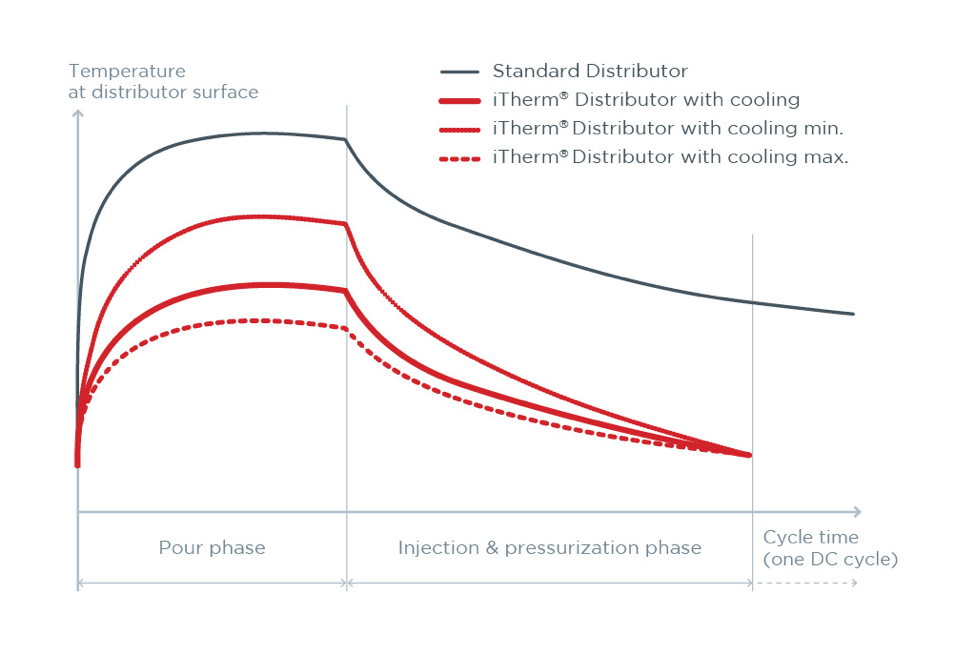 iTherm® Injection System is a complete unit that assures production stability, product quality, and provides the means for optimization of the casting process, shorten the casting cycle, and improve productivity. iTherm® Distributor, together with iTherm® Piston, iTherm® Feed ring, and shot sleeve, forms a critical part of iTherm® DC Injection system, an ultimate solution and a proven performer.